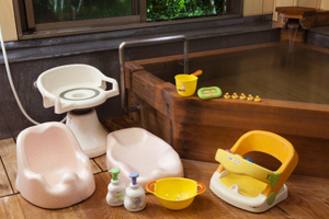 赤ちゃんと一緒でも安心、便利な「お風呂グッズ」完備。 |