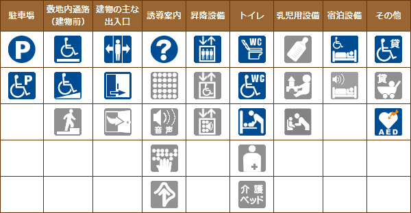 バリアフリートイレは、1階料亭街「花伝茶寮」横と地下1階料亭街「夢千代小路」横にございます。